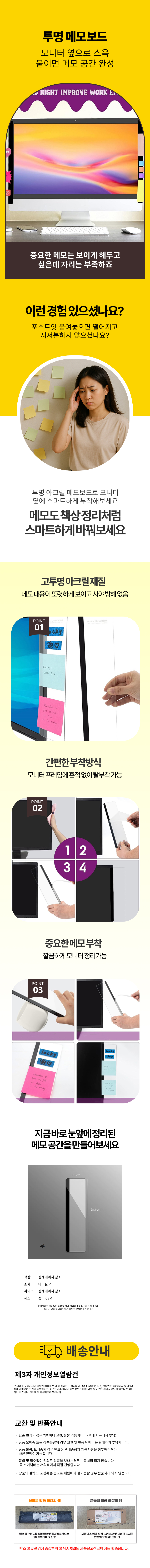아크릴 투명 모니터 부착 메모 보드 홀더 회사 데스크