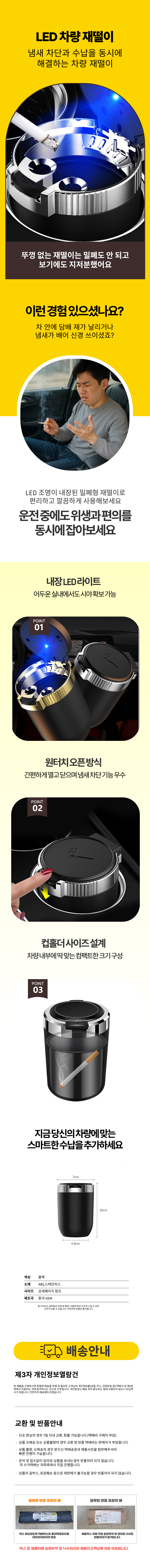 차량용 냄새차단 LED 원터치 재떨이 멀티 쓰레기통