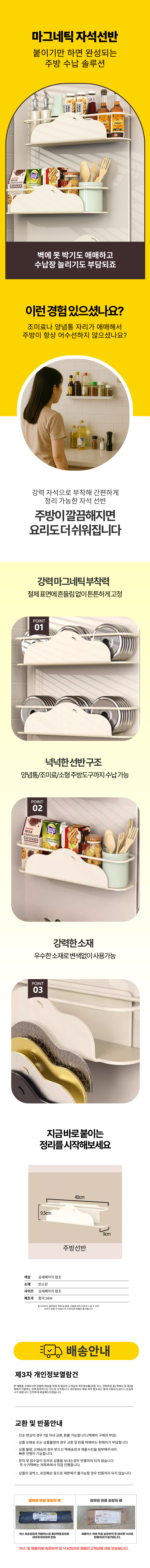 무타공 구름 자석선반 마그네틱 주방 정리수납 틈새
