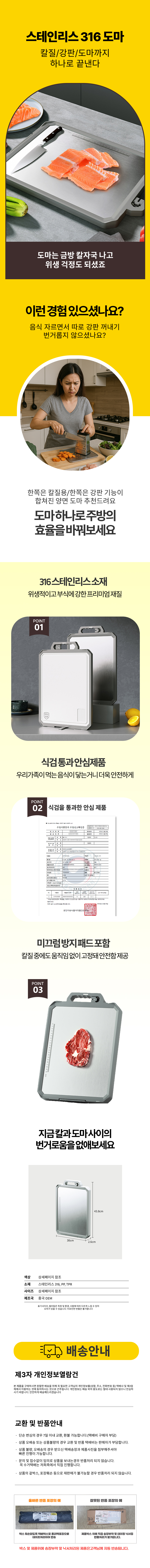도마 칼갈이 강판 일체형 양면도마 조리도구 스텐도마