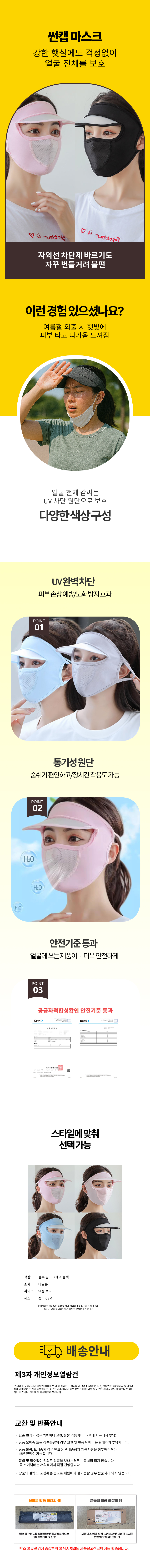 자외선차단 스포츠 여름 야외활동 여성 등산 마스크