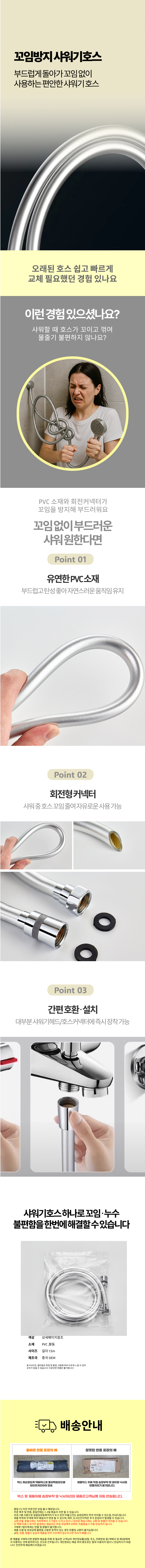 꼬이지않는 물때없는 튜브형 샤워기 부식 교체용 호스