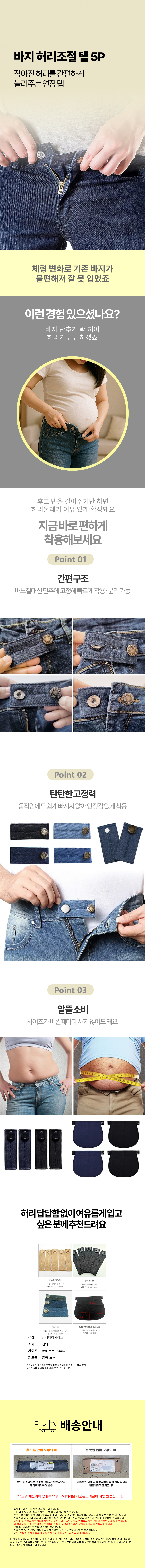 청바지 바지늘리기 셀프수선 허리 5개 후크 밴딩탭