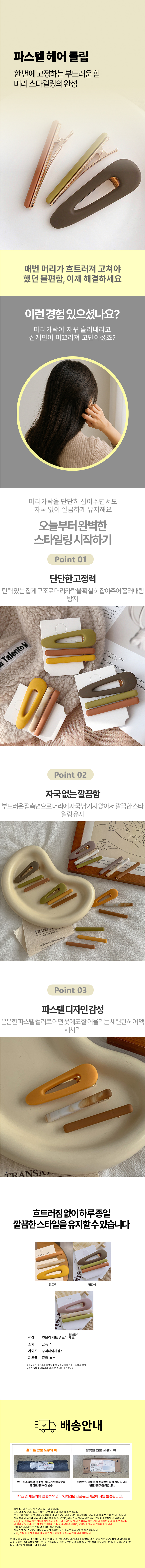 헤어삔 파스텔 여성머리핀 헤어집게핀 클립형 헤어핀
