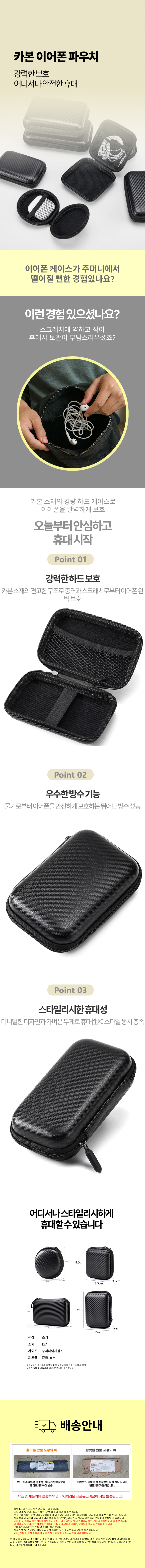 이어폰 하드 파우치 충전기 케이블 화장품 보관 카본