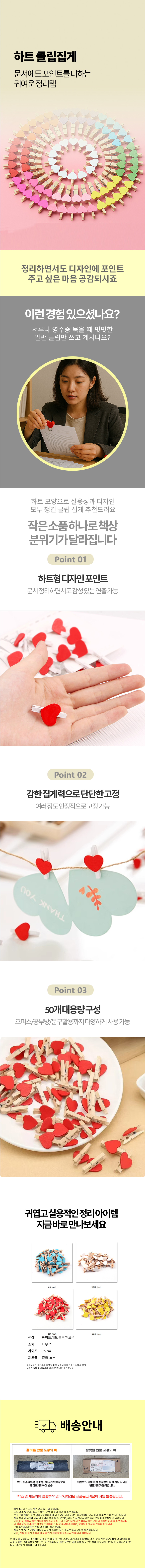 칼라 클립 걸이 문구 원목 서류 정리 집게 하트 클립