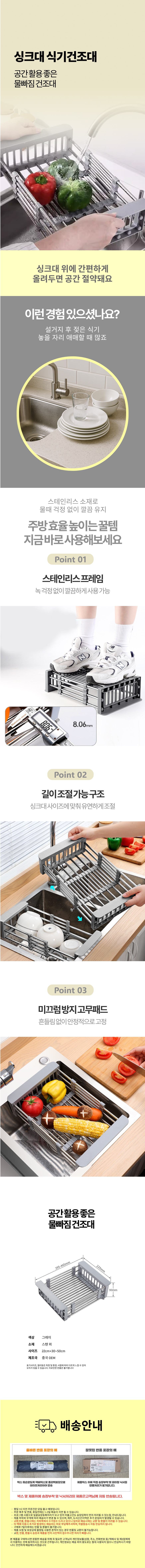 설거지 싱크대 보조 스텐 길이 조절 식기 건조대