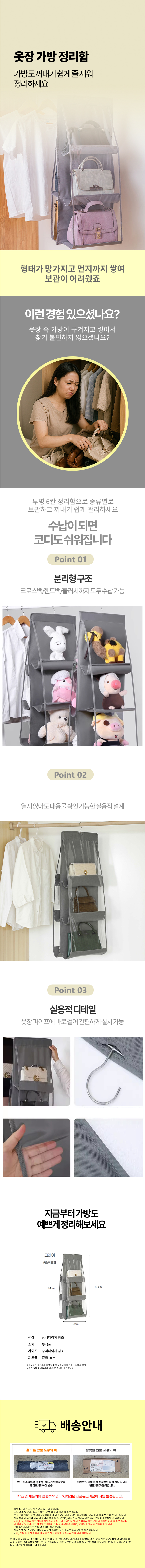 공간활용 핸드백 가방 보관 틈새 수납 투명6칸 정리함