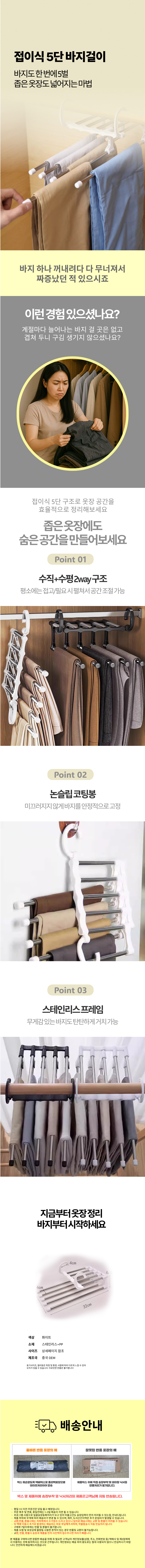 좁은옷장 하의 바지 접이식 옷걸이 5단 바지걸이 행거