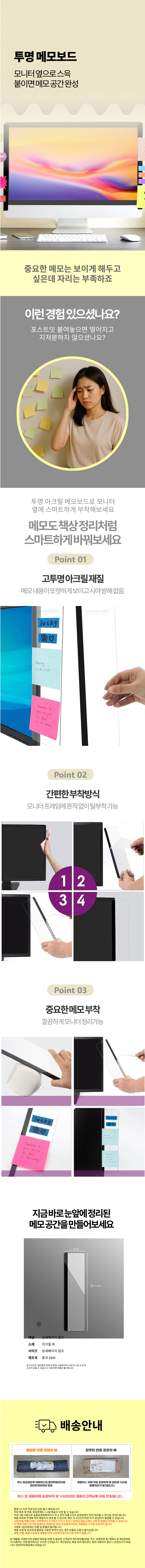 공간활용 부착 투명 아크릴 메모 보드 홀더 보드칠판