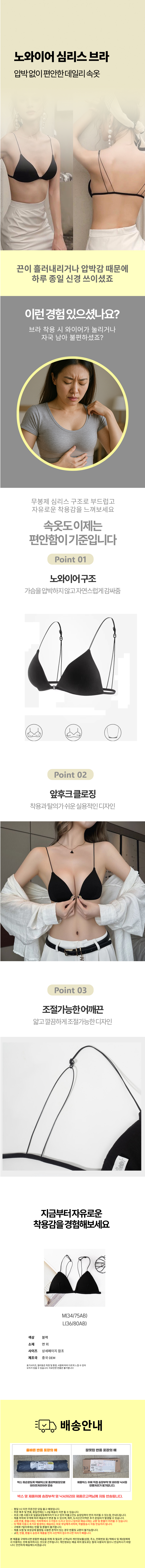 노와이어 길이조절 편안한 탈부착 심리스 면 브라