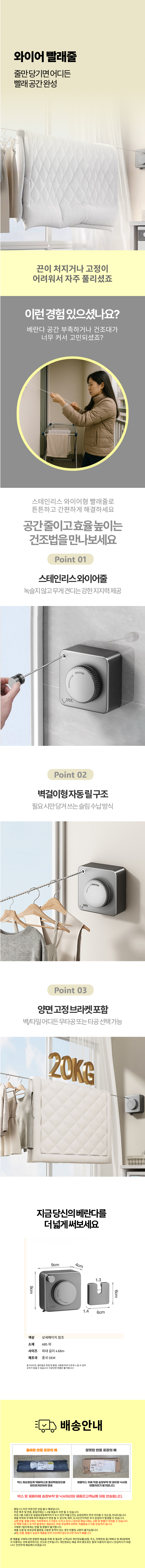 부착식 무타공 베란다 다용도 빨래줄와이어 세탁걸이