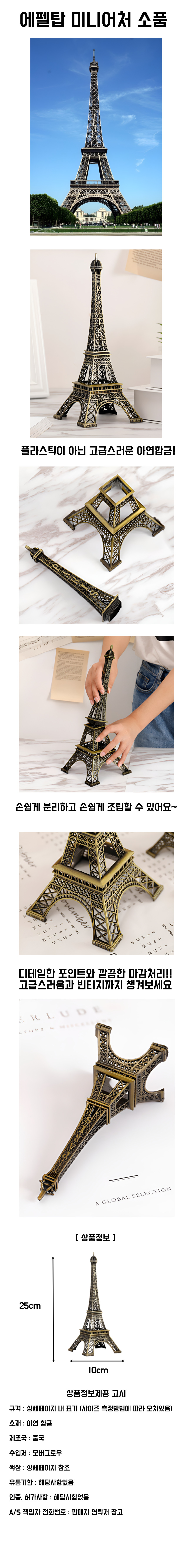 에펠탑 합금 미니어처 인테리어 빈티지 소품 25cm
