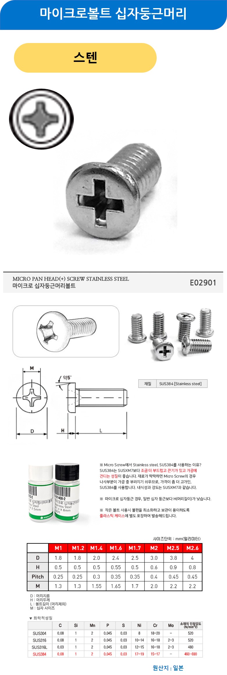 마이크로볼트 십자둥근머리 스텐 M2.6x10mm 100개