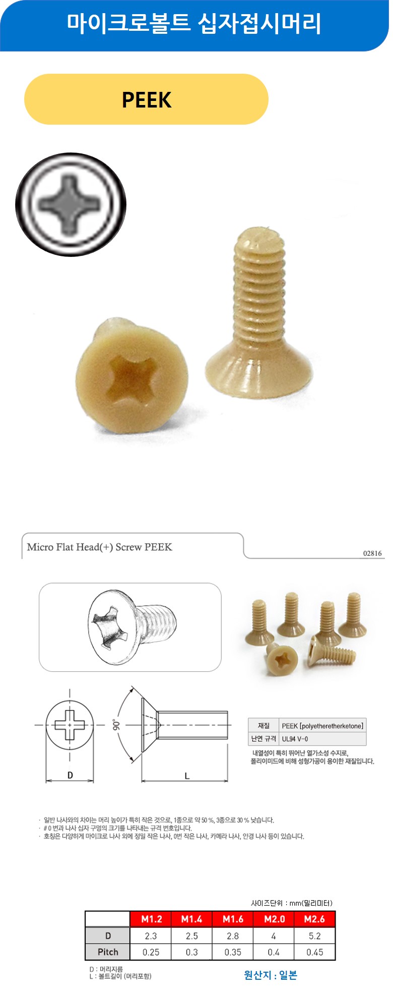 마이크로볼트 십자접시머리 PEEK M1.2x4mm 100개