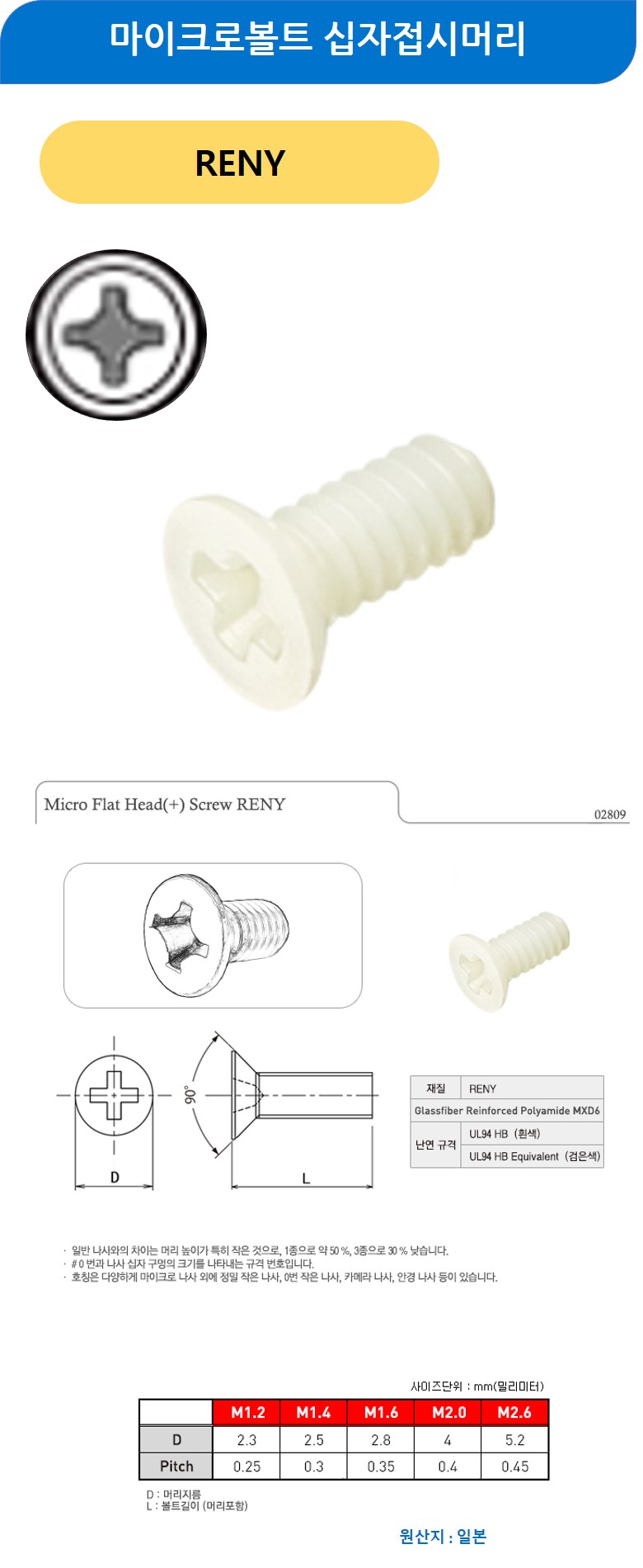 마이크로볼트 십자접시머리 RENK M1.6x2.5mm 100개
