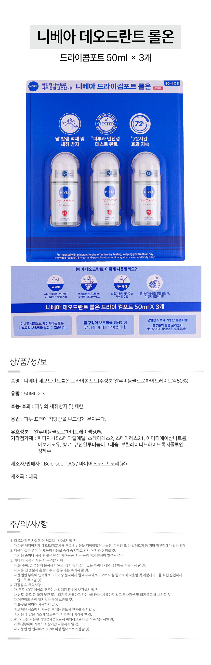 니베아 데오드란트 롤온 드라이콤포트 50ml 3개