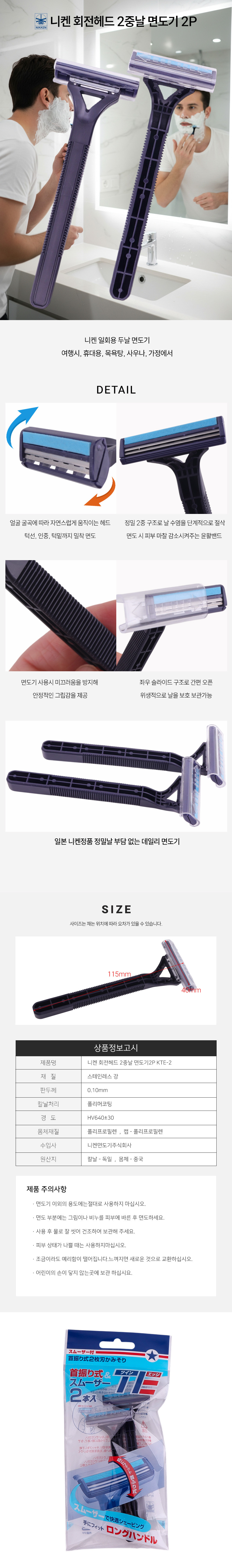니켄 회전헤드 2중날 일회용 면도기 2개