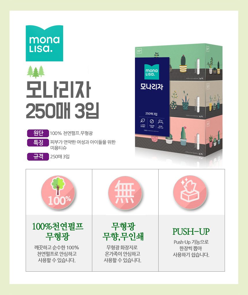 모나리자 라이브스마트 각티슈 250매 3곽1팩 벨라지오