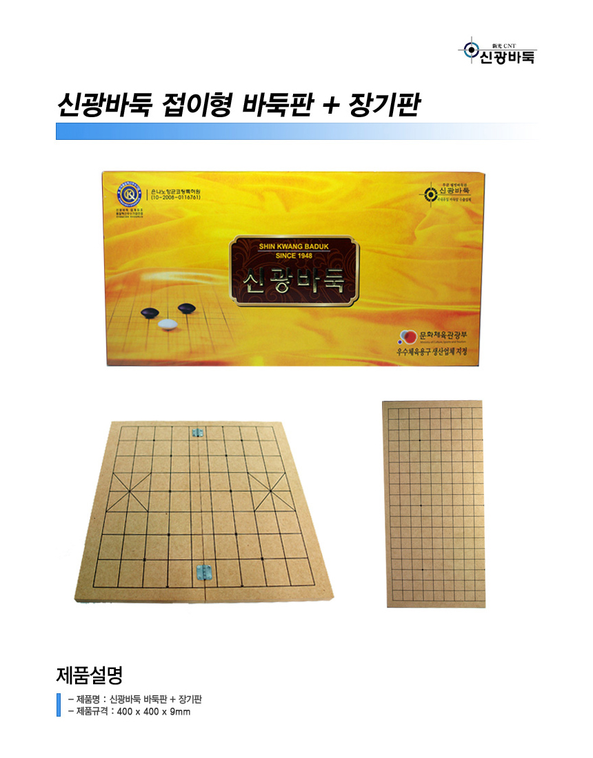 신광바둑 접이식바둑판 9mm 바둑용품 400x400x9 (1개