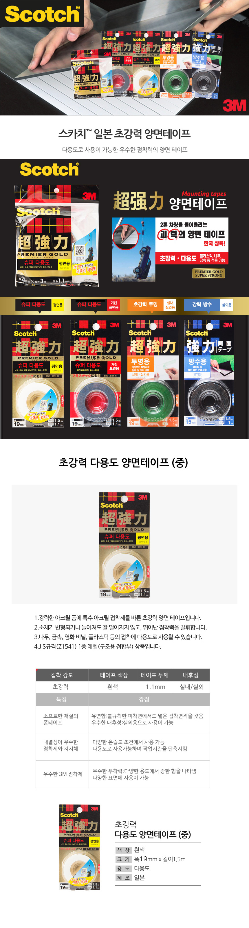 3M 초강력 폼양면테이프 KPS-19 슈퍼다용도 평면용