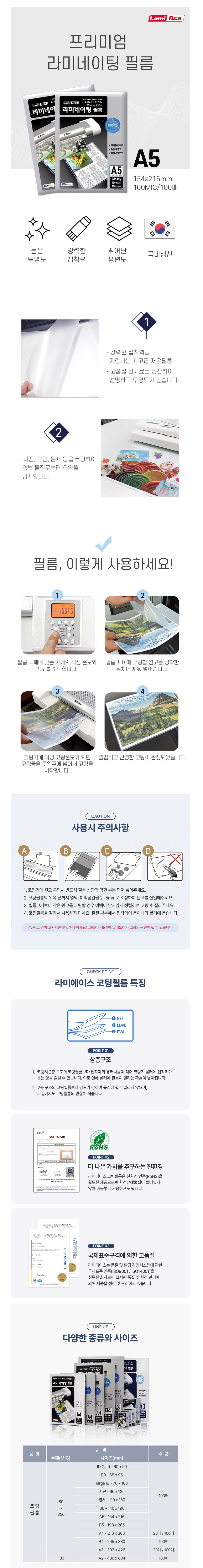 라미에이스 라미네이팅 필름 100mic A5 154x216mm (1