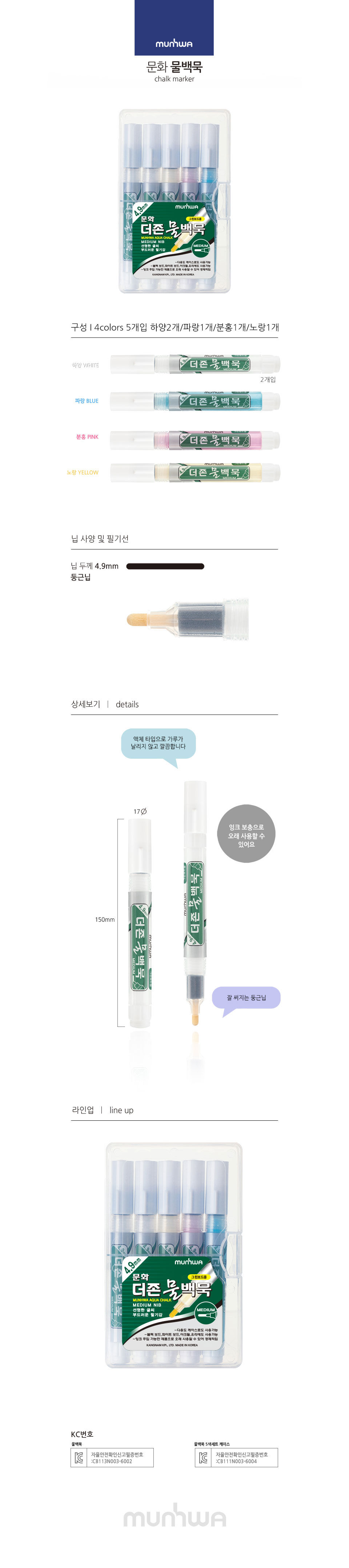 문화연필 더존물백묵펜 5본세트