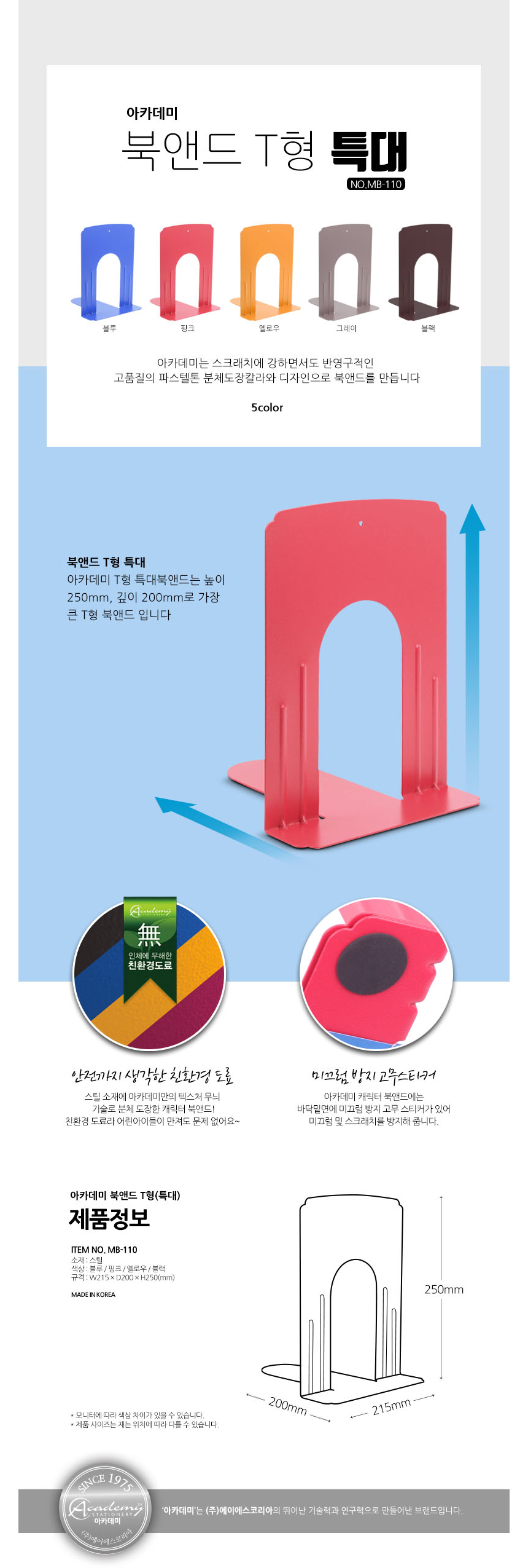 아카데미 북앤드 MB-110 특대 색상랜덤 2개입