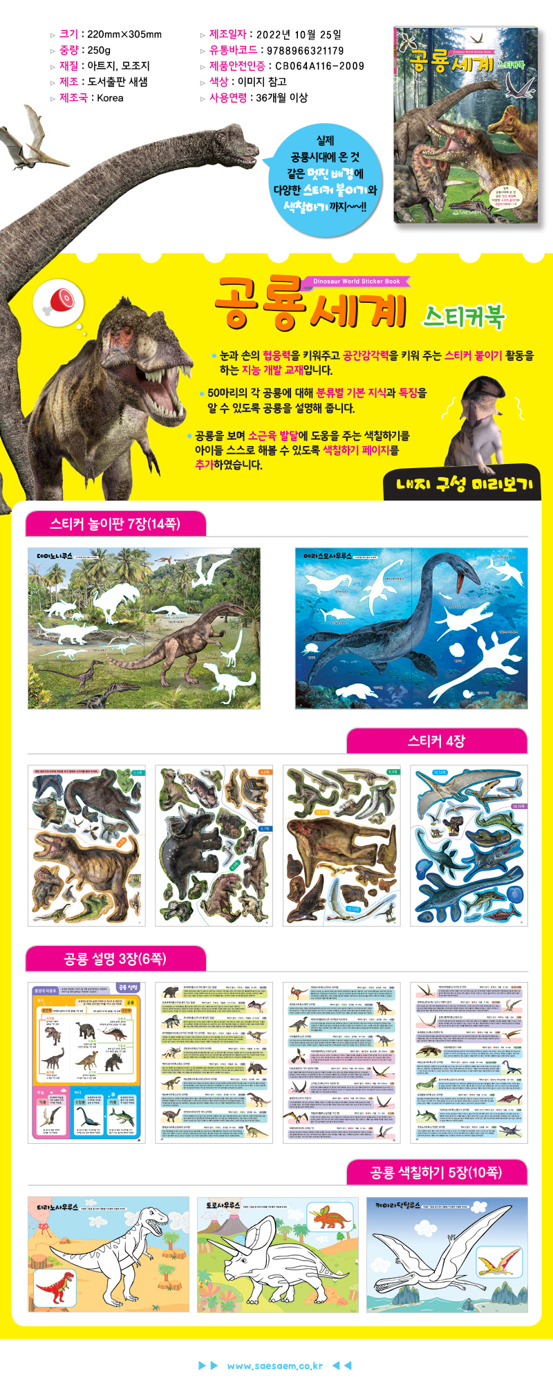 새샘 스티커북 공룡세계 220mmx305mm (1개입)