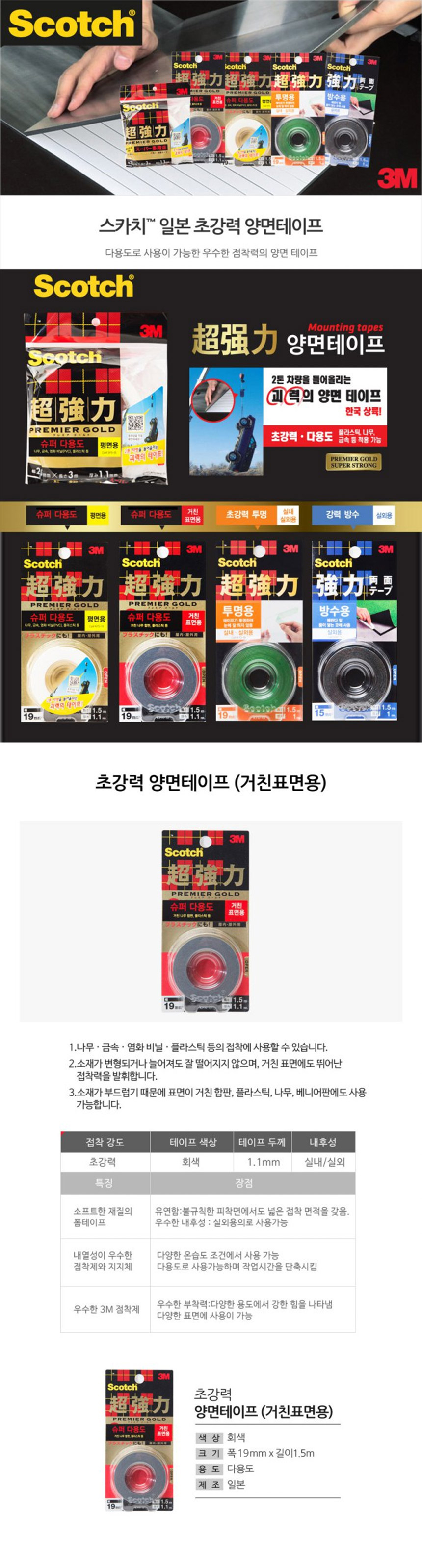 3M 초강력 폼양면테이프 KPR-19 슈퍼다용도 거친표면