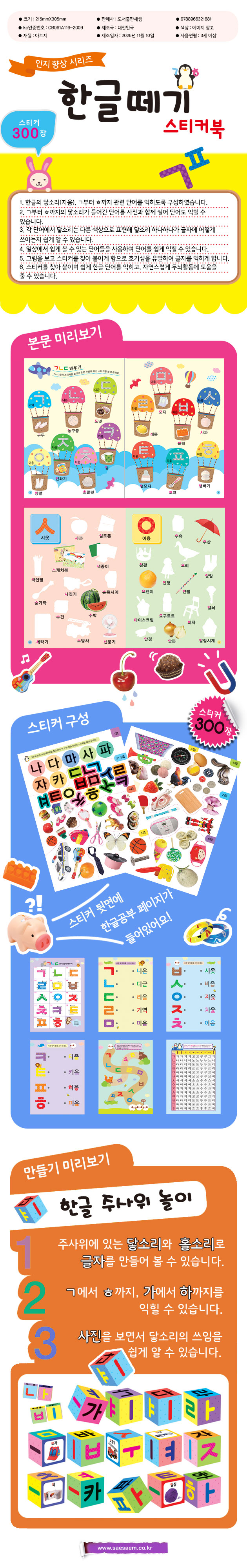 새샘 한글떼기 스티커북 215x305mm (1개입)