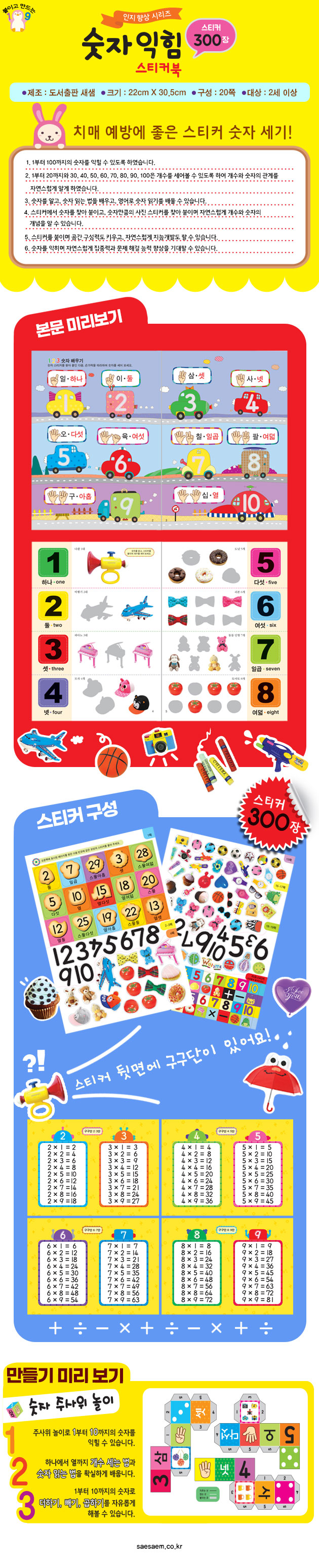 새샘 숫자익힘 스티커북 22x30.5cm300장 (1개입)