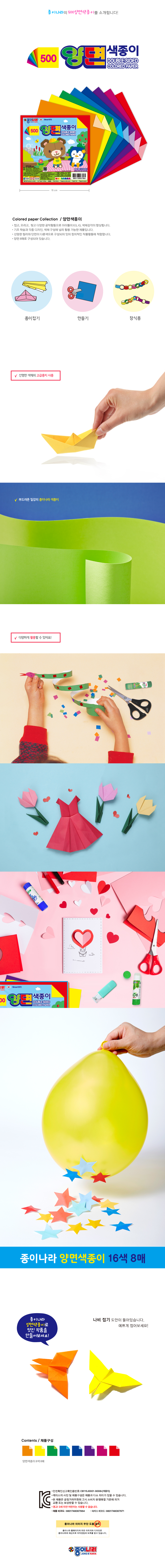 종이나라 500 양면색종이 16색 8매 (15x15cm) (30개입