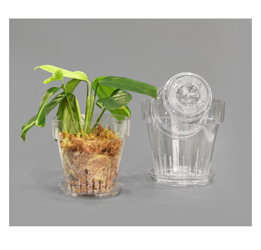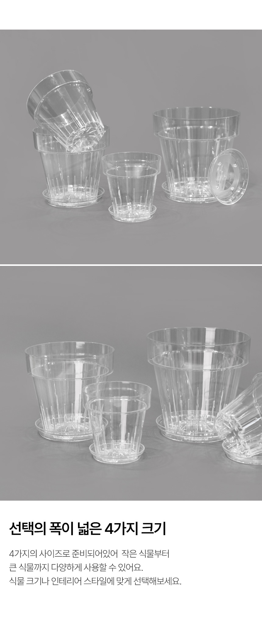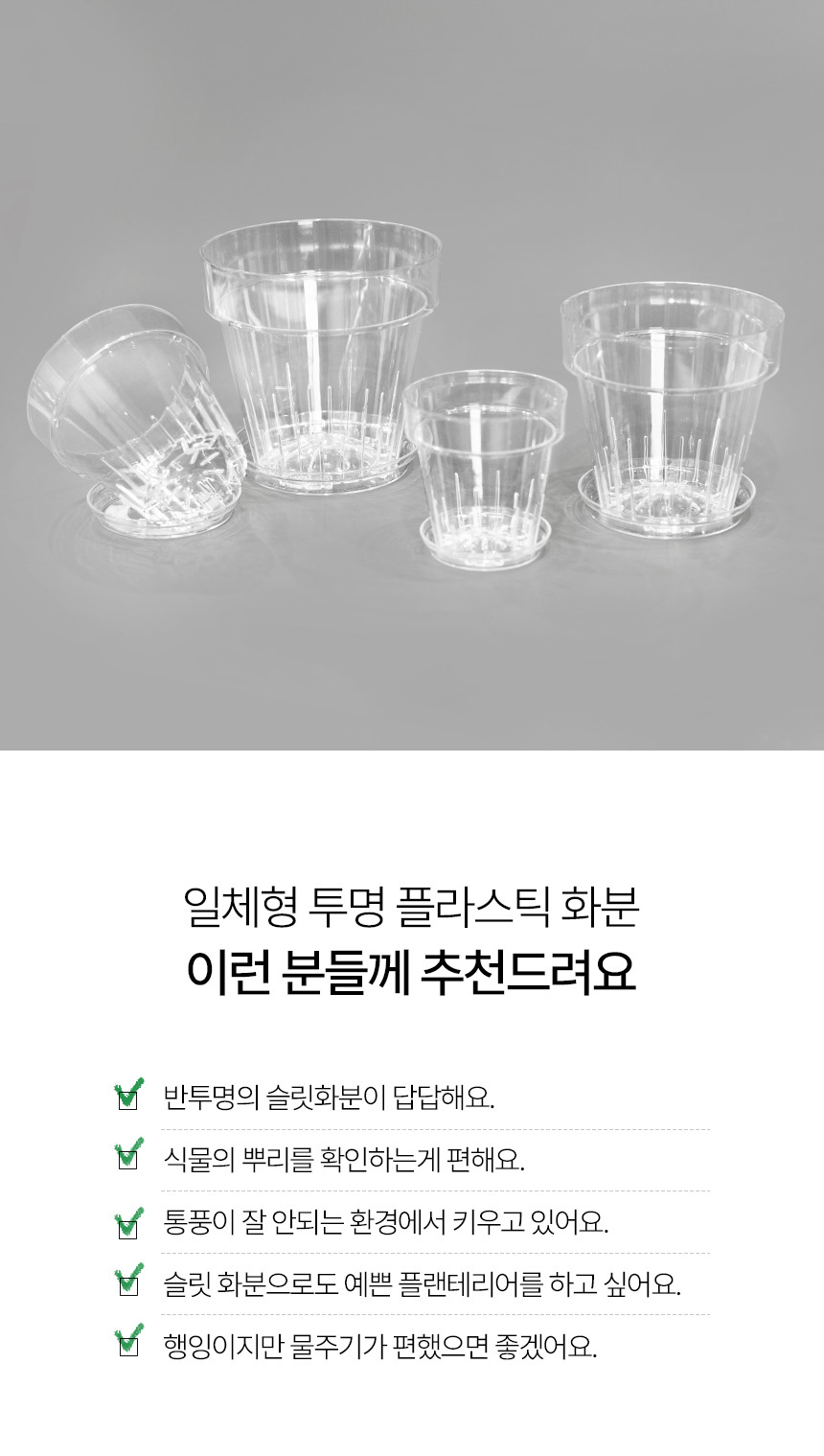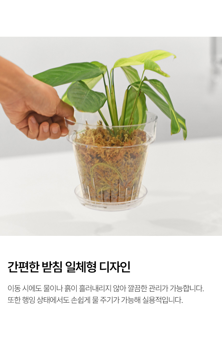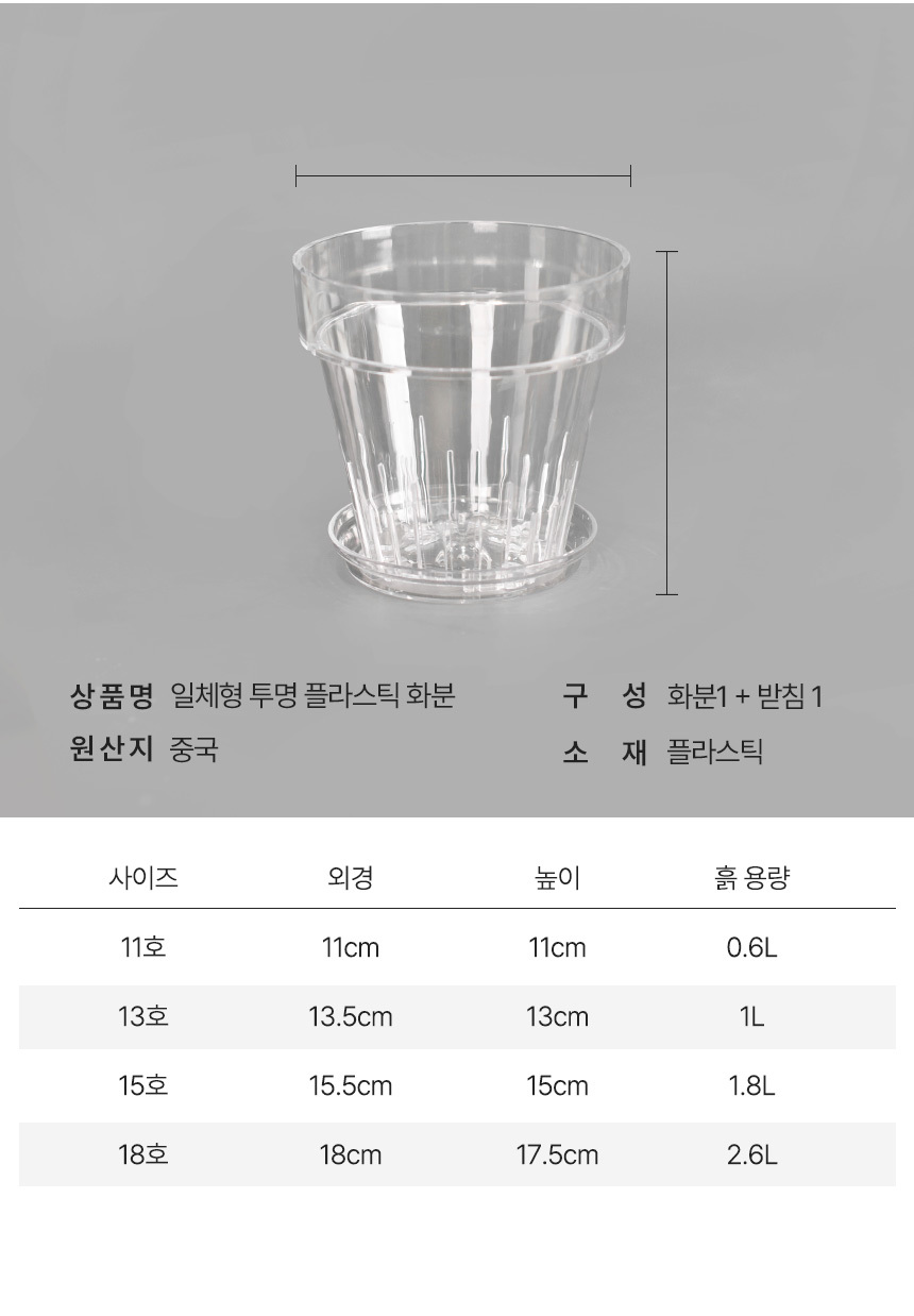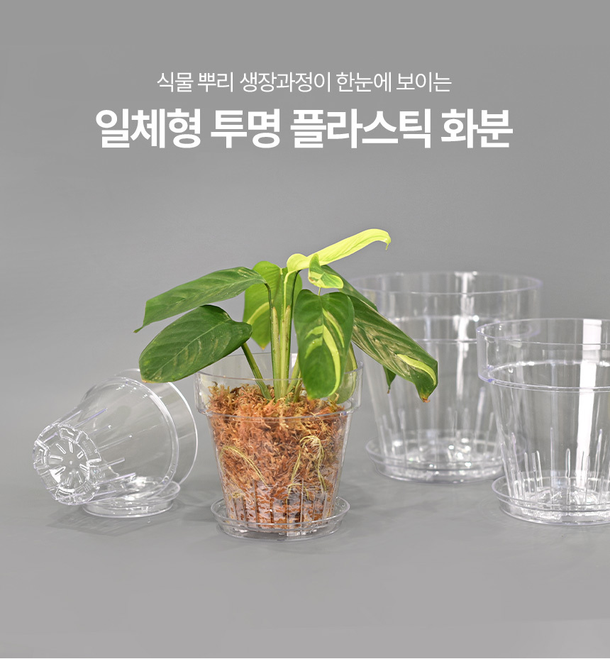 받침 일체형 투명 플라스틱 화분