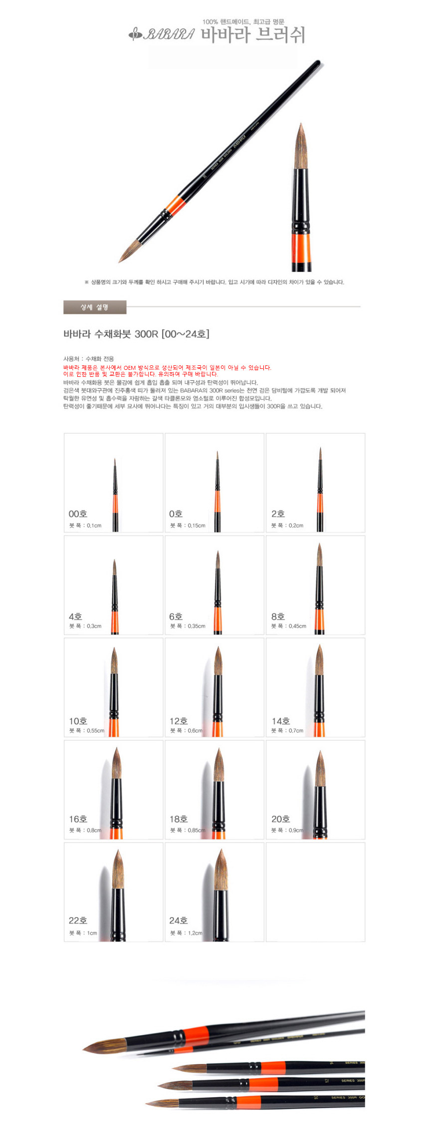 바바라 수채화붓300R 0호 환붓 (1개입)