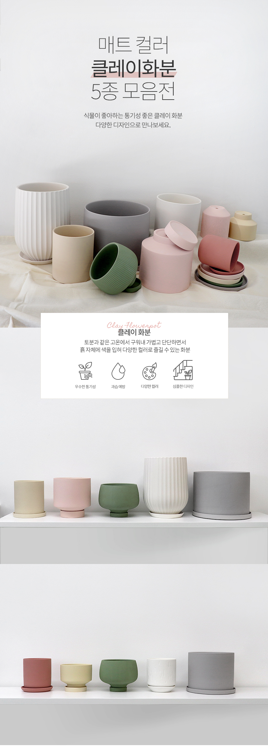 클레이 화분 5종 모음(받침세트)