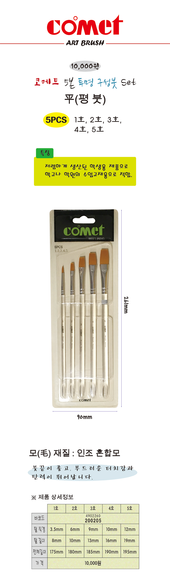 칠성당 코매트 투명구성붓 5본세트 미술용품