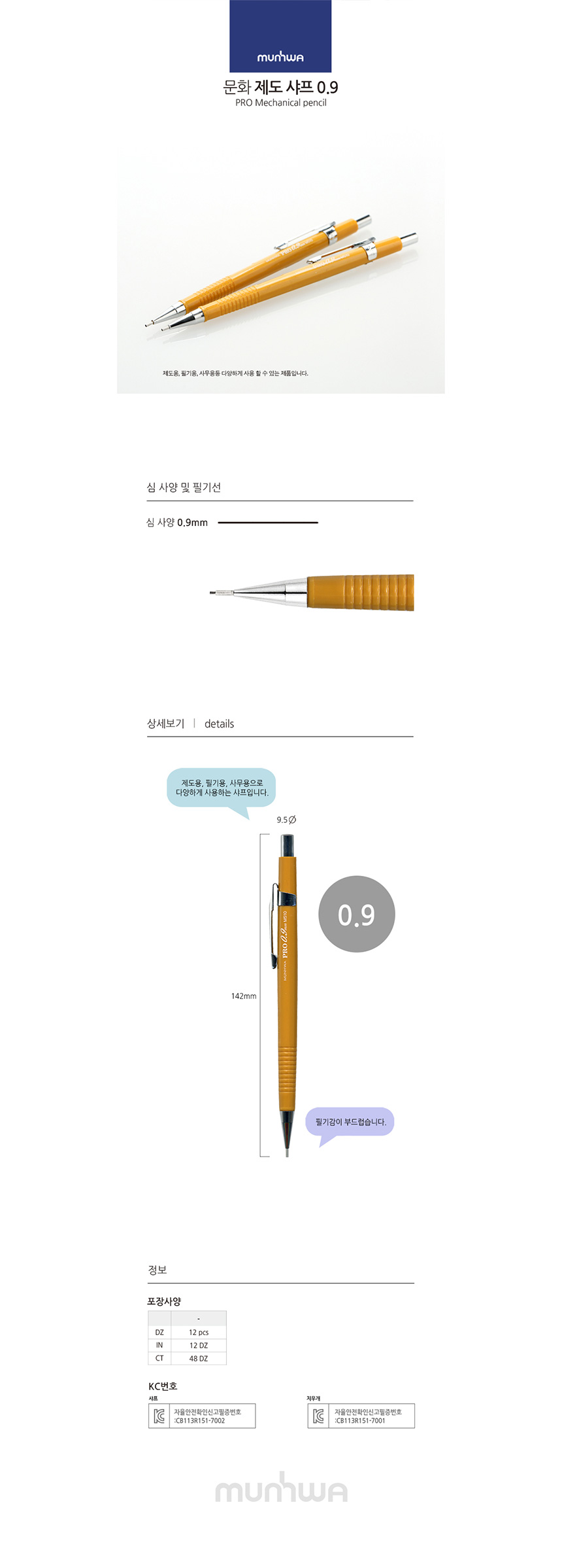 문화연필 프로 제도샤프 0.9 M510 (황색바디) (12개입