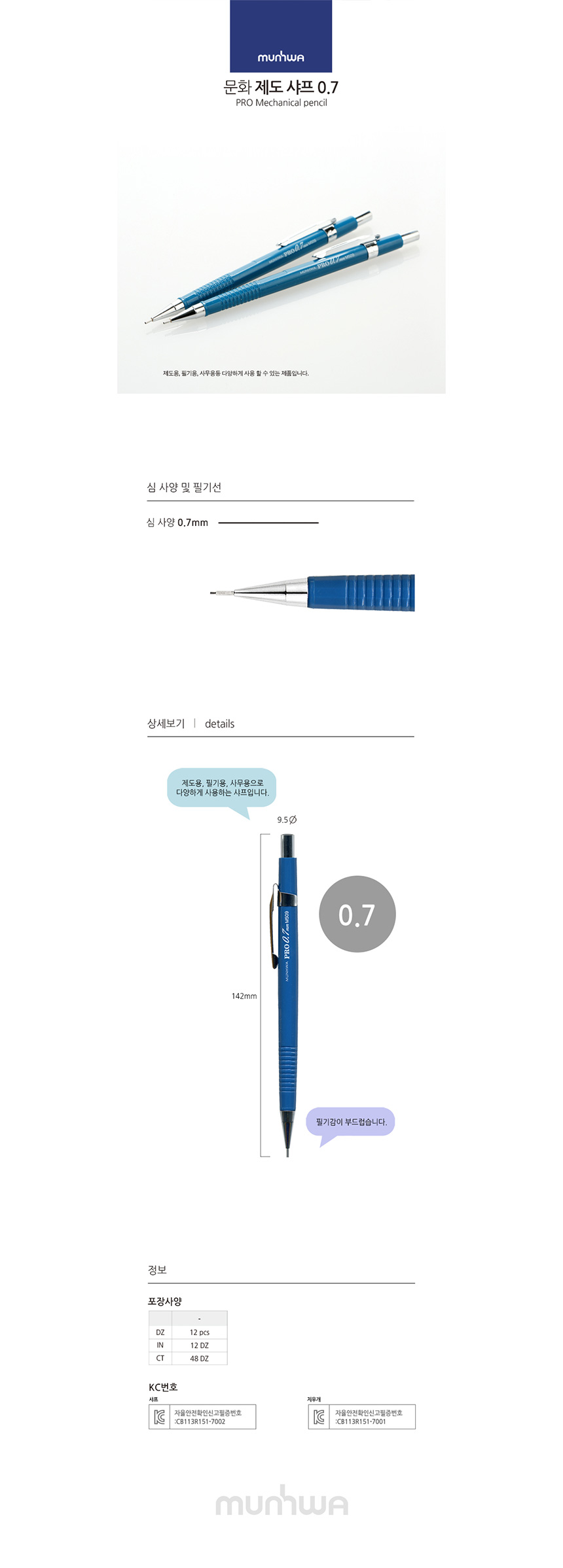 문화연필 프로 제도샤프 0.7 M509 (청색바디) (12개입