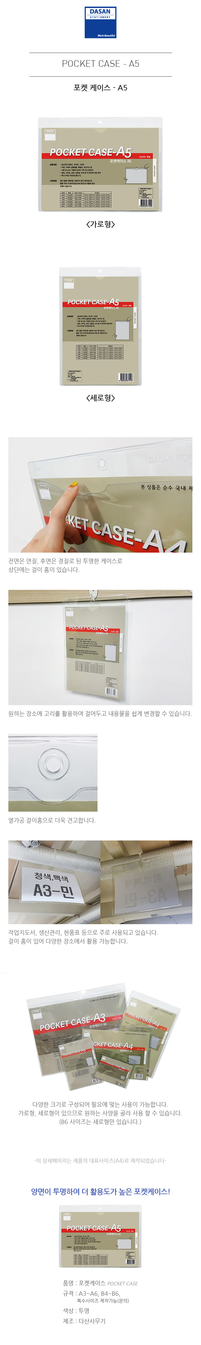 다산 포켓케이스 A5 가로형 225x180 (10개입)