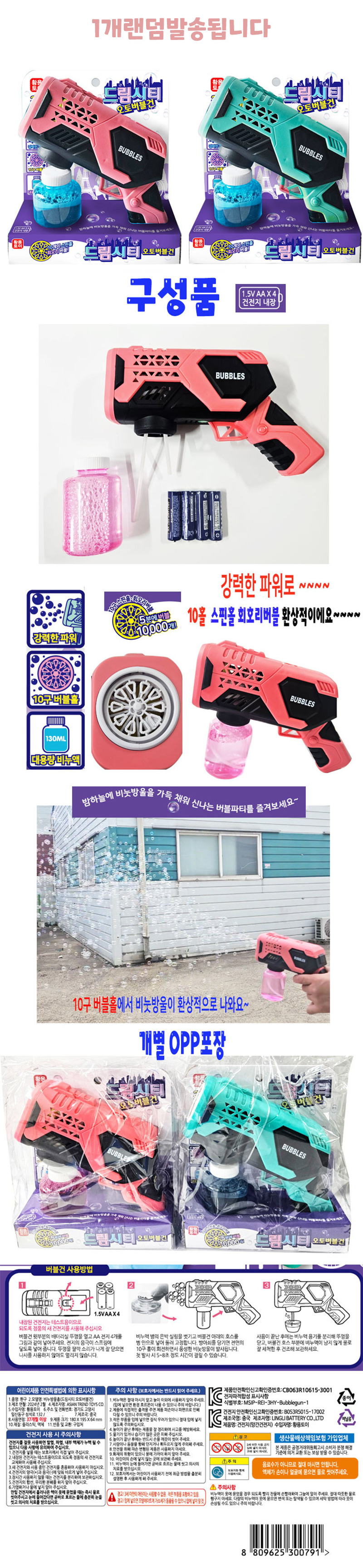 (황용) 드림시티 오토 버블건 핑크 (1개입)