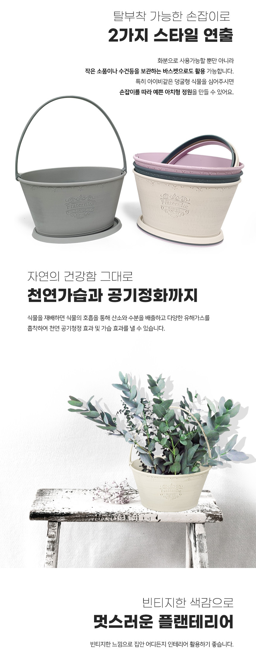 프로방스 타원형 화분 (받침세트)