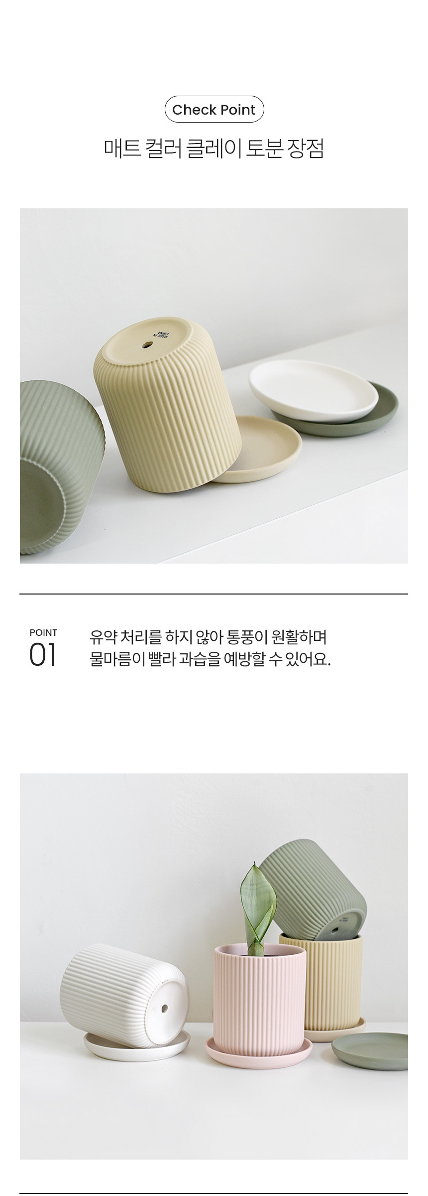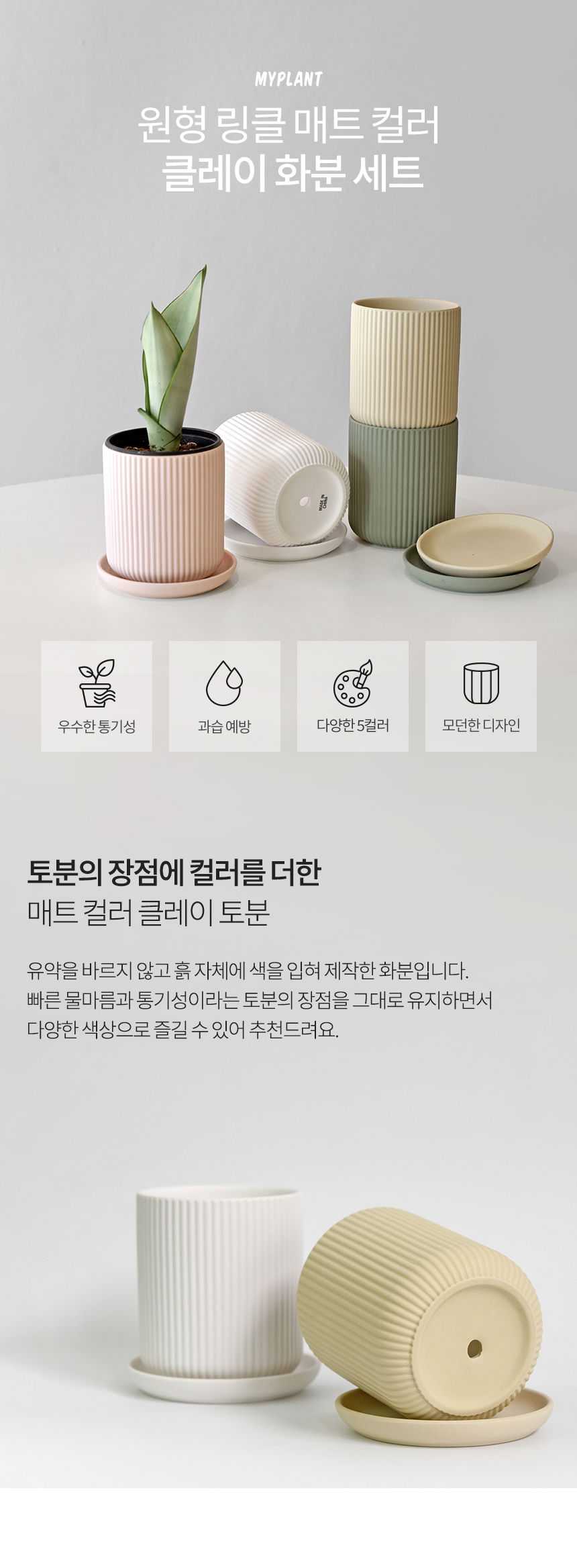 원형 링클 매트 컬러 클레이화분 (받침세트)