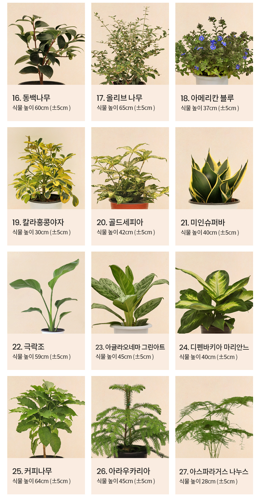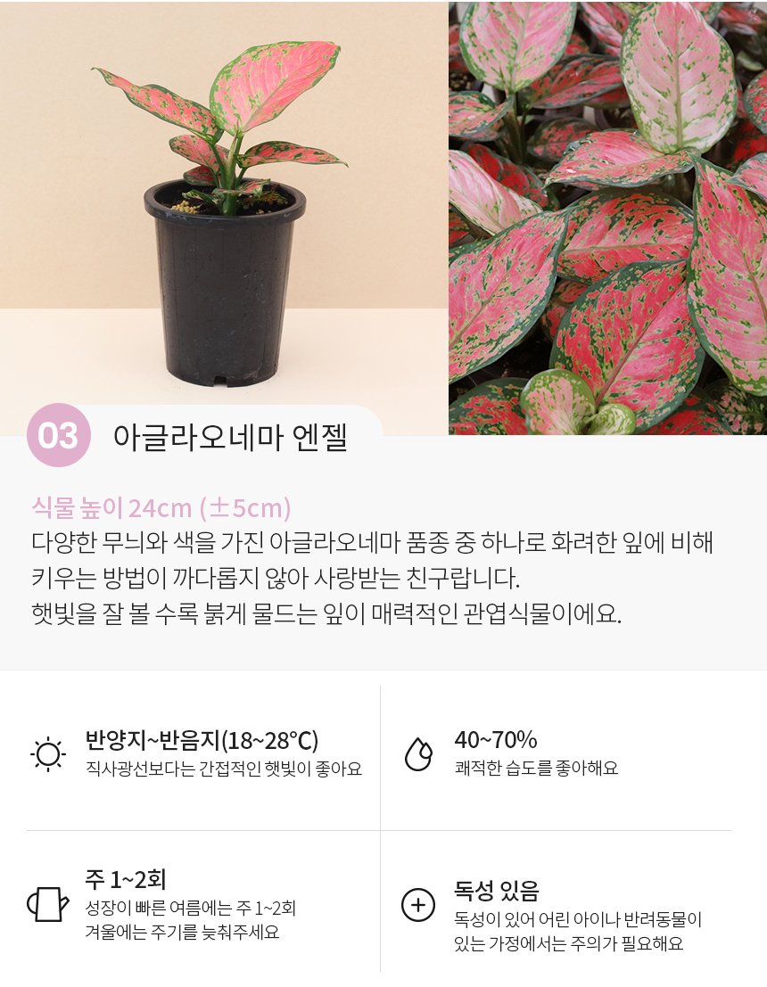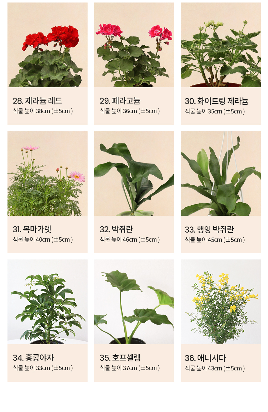 싱그러운 중형 식물 모종 모음