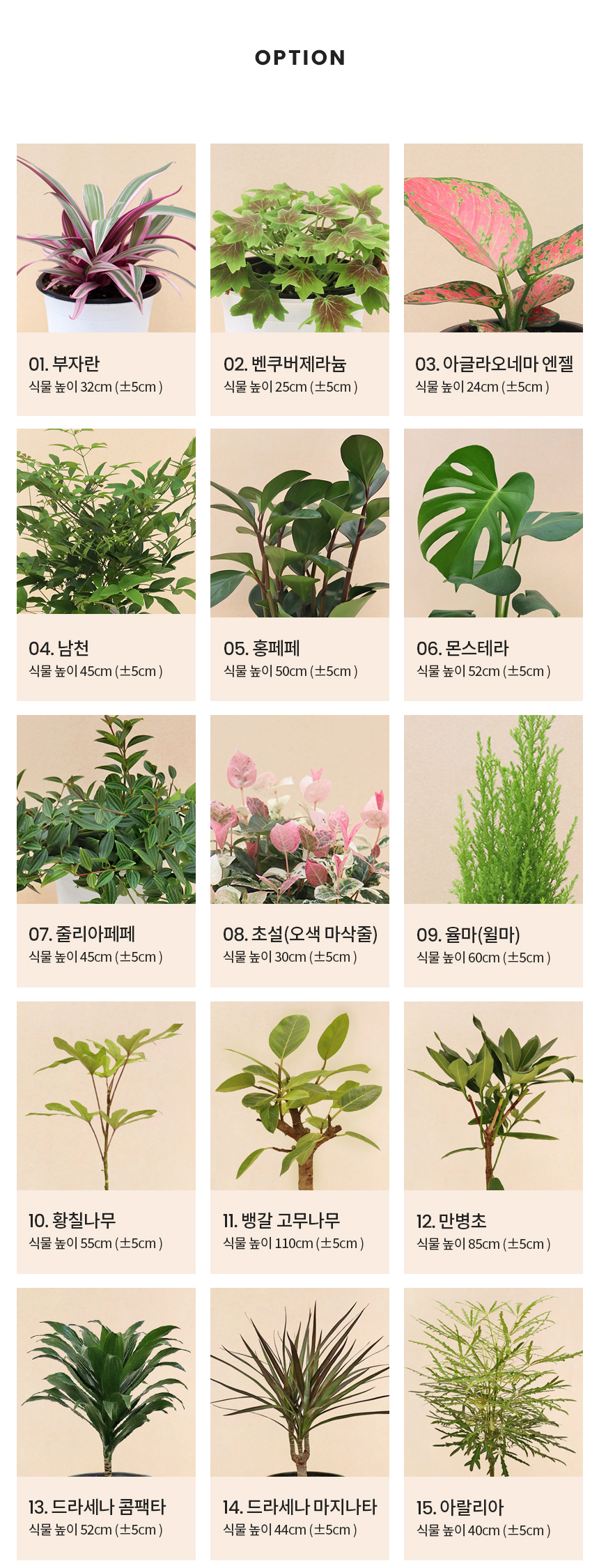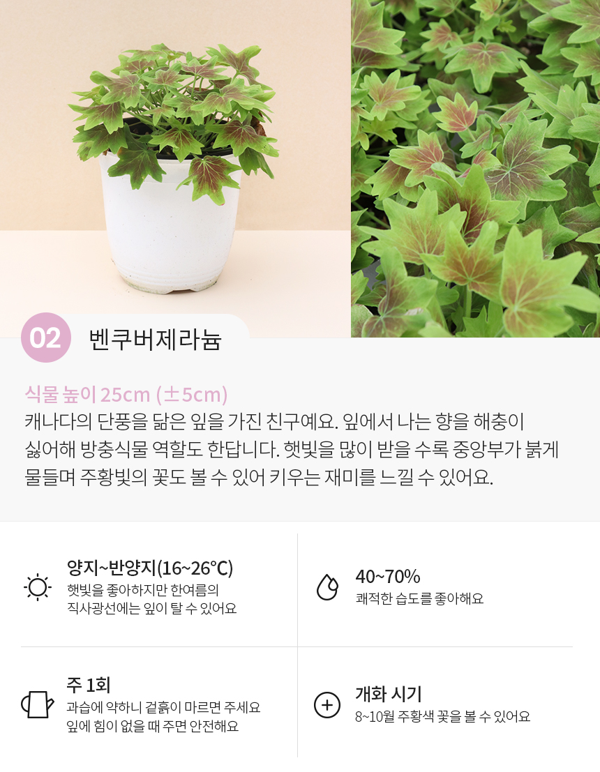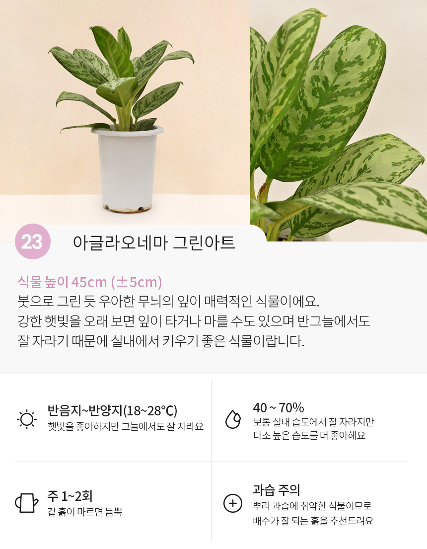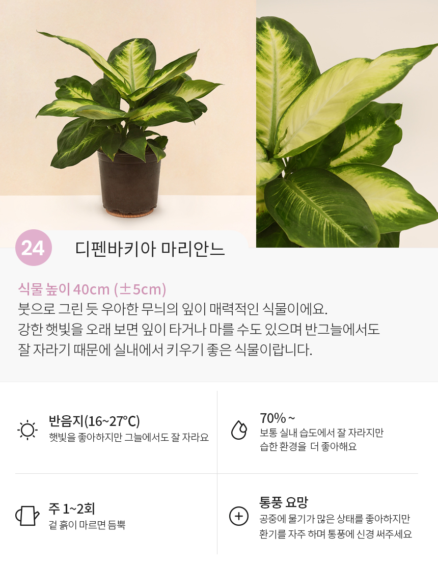 싱그러운 중형 식물 모종 모음