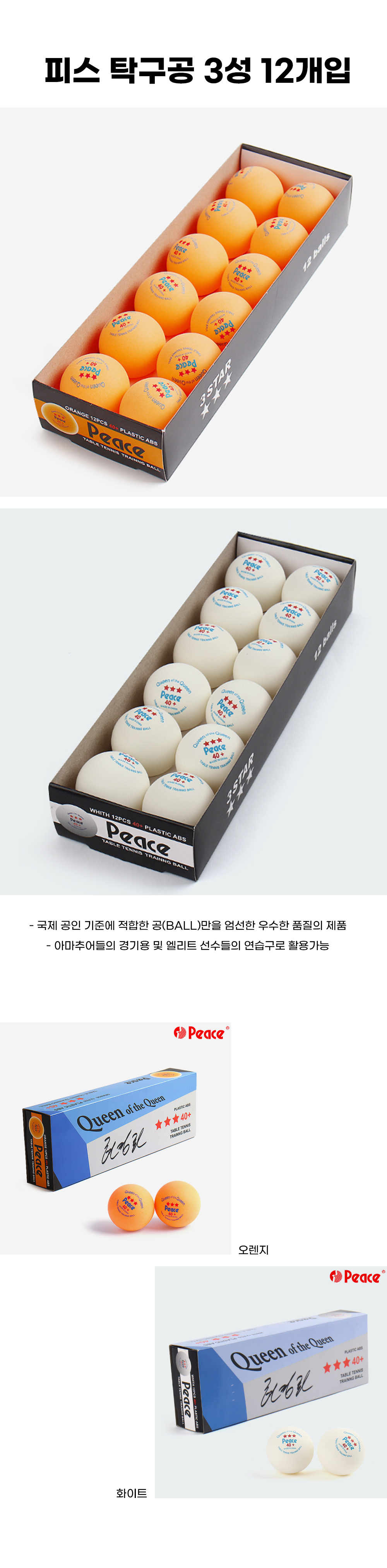 피스 탁구공 노랑색(주황) 3성 12개입 운동용품