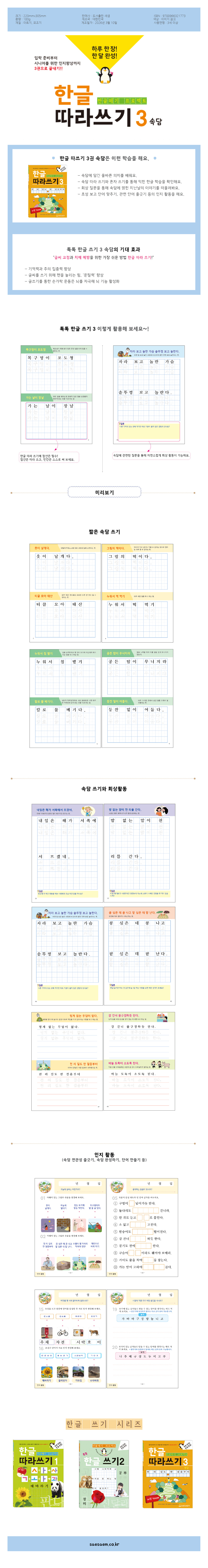 새샘 한글 따라쓰기 3 속담 (1개입)