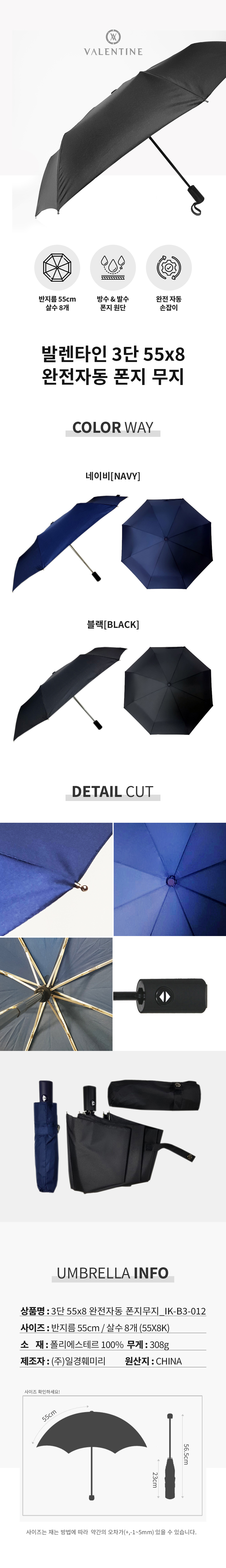 발렌타인 3단 우산 완전자동 폰지무지 무광 55cmx8k (