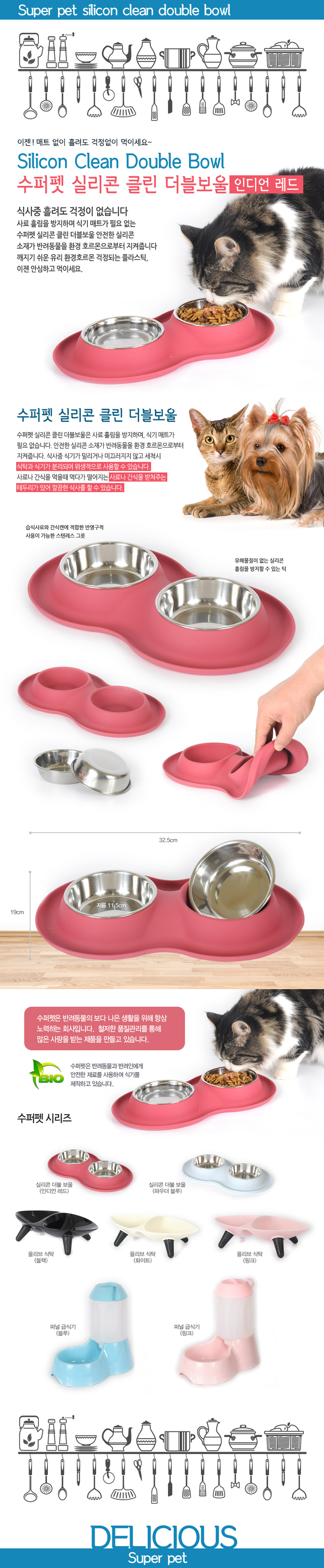 수퍼펫 실리콘 클린 더블보울(인디언레드)