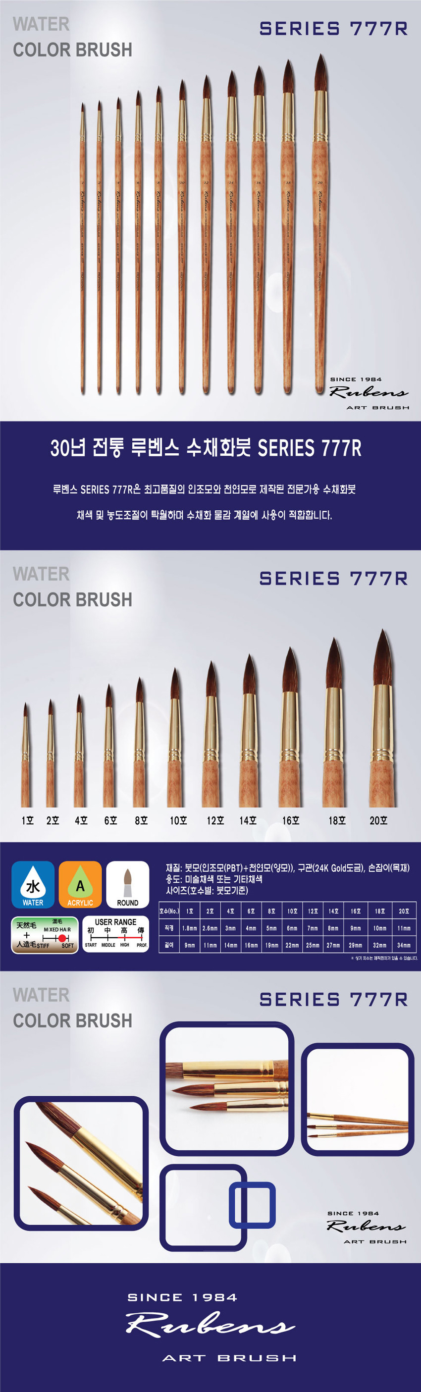 (루벤스) 수채화붓777 14호 (1개입)